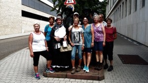 Selbst Temperaturen von über 30°Celcius konnten 10 TVD’ler nicht davon abhalten an der „Rassler-Sternwanderung“ anlässlich dem Jubiläum „250 Jahre Goldstadt“ teilzunehmen. Zu dritt ging es von Dürrn nach Kieselbronn. Hier warteten dann die anderen 6 Wanderer und unsere „Rasslerin“ Margit sowie Turnfreunde aus Kieselbronn. Margit ließ es sich nicht nehmen stilgerecht in 3-4 lagiger Kleidung -angefangen mit Spitzenpumphosen, Unterrock, Überrock, Leinenhemd (über 100 Jahre alt), Schultertuch, Blechdose und Gulaschkanone – auf den Spuren der Rassler nach Pforzheim zu wandern. Nach schweißtreibenden 2 Stunden erreichten wir unser Ziel den Stadtgarten Pforzheim. Hier feierten wir mit vielen Gleichgesinnten, die sich auf dem ganzen Enzkreis auf den Weg gemacht hatten einen vergnüglichen Nachmittag ehe es wieder auf die Heimreise ging – als „moderne Rassler“ dieses Mal mit dem Bus!
