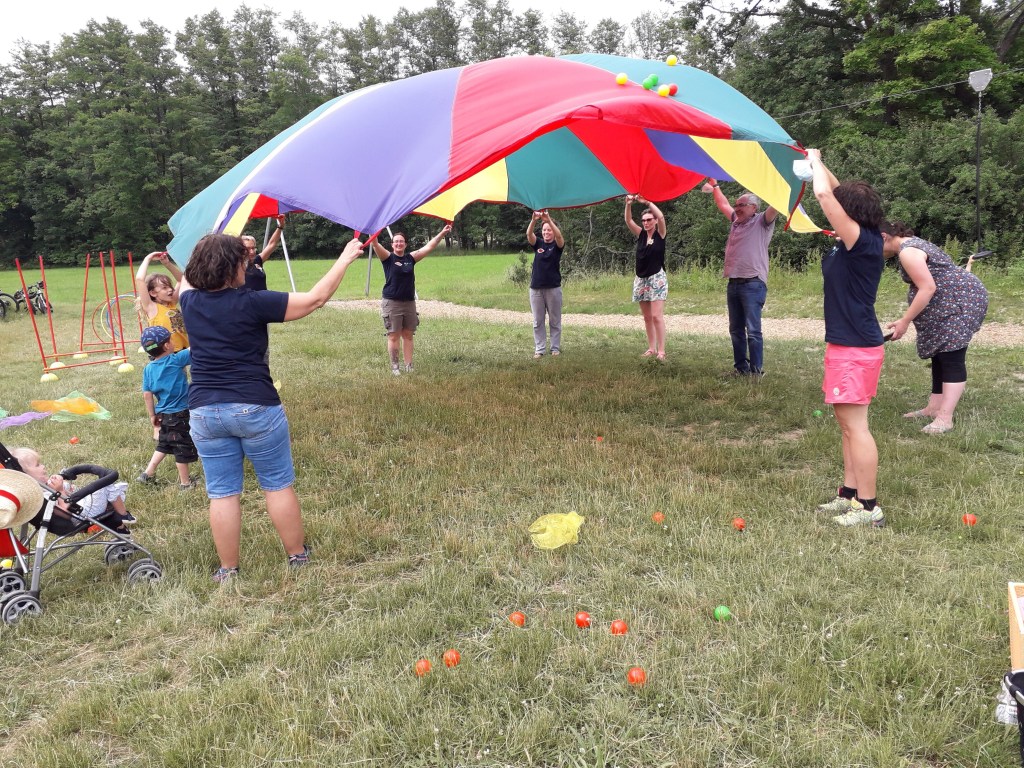 Eine gelungene und erfolgreiche Zusammenarbeit fand am Sonntag ihren Abschluss. Nachdem ca. 20 Famillien unter der Woche Ihren Spaß beim Waldentdecker-Actionbound hatten, war am Sonntag beim feierlichen Abschluss mit der Kirche Kunterbund nochmals Kreativität und Bewegungsfreude angesagt. 70 Teilnehmer von klein bis groß waren beim Frosch-Parcour, beim Bärenkampf oder beim Flügelschlag mit viel Engagement und vor allem jeder Menge Freude dabei. Nach einer „Feierzeit“ mit kurzen Impulsen und viel Gesang gab es für die Familien noch Ihre Waldentdecker-Urkunde mit Bild und das wohlverdiente Vesper.